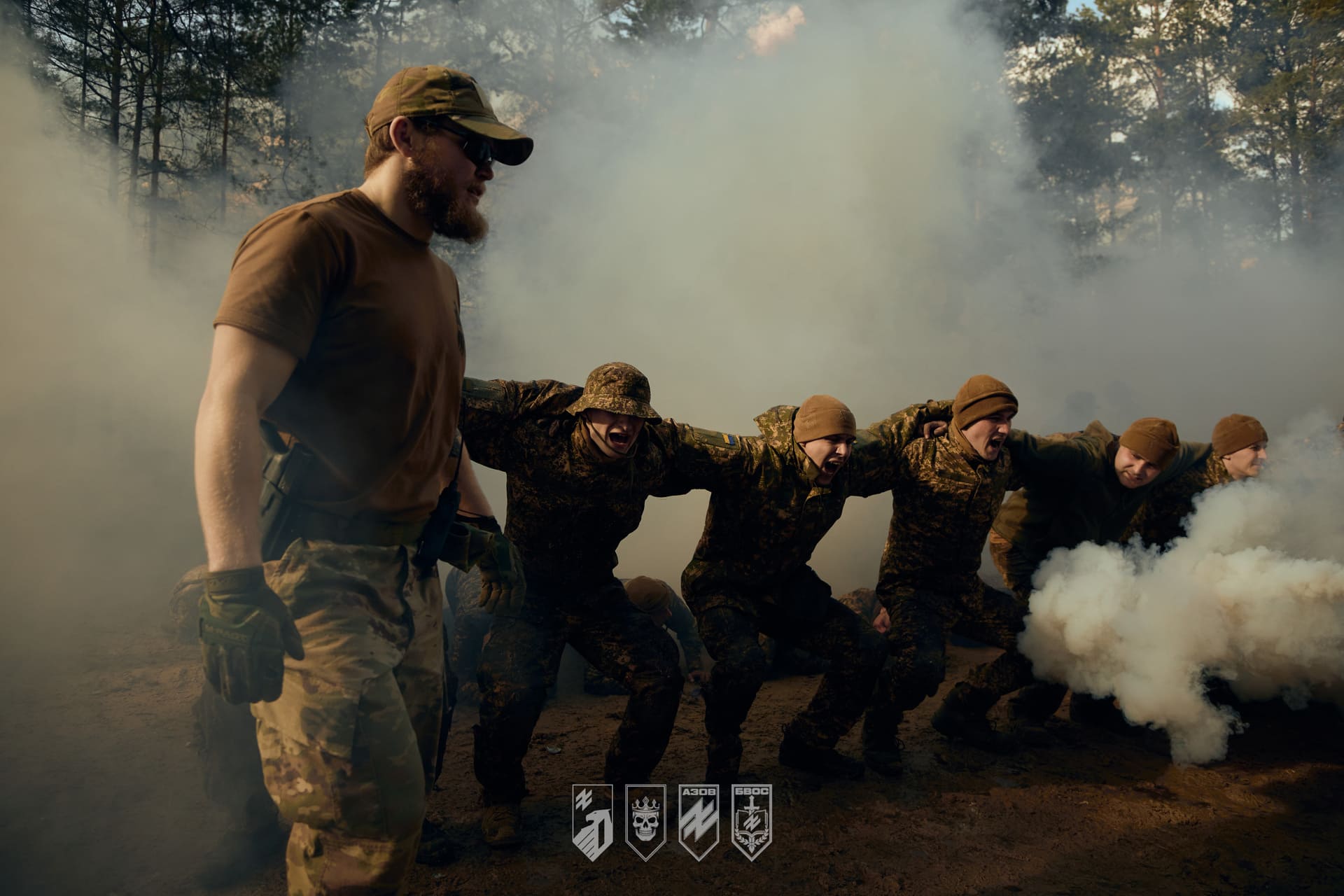 Це початок шляху для рекрутів, які обрали «Любарт» і «Азов». Вони вже стали до навчання під керівництвом досвідчених інструкторів — бійців «Любарта» й «Азову» з реальним бойовим досвідом та за підтримки Батальйону вишколу особового складу 1-го корпусу НГУ «Азов».